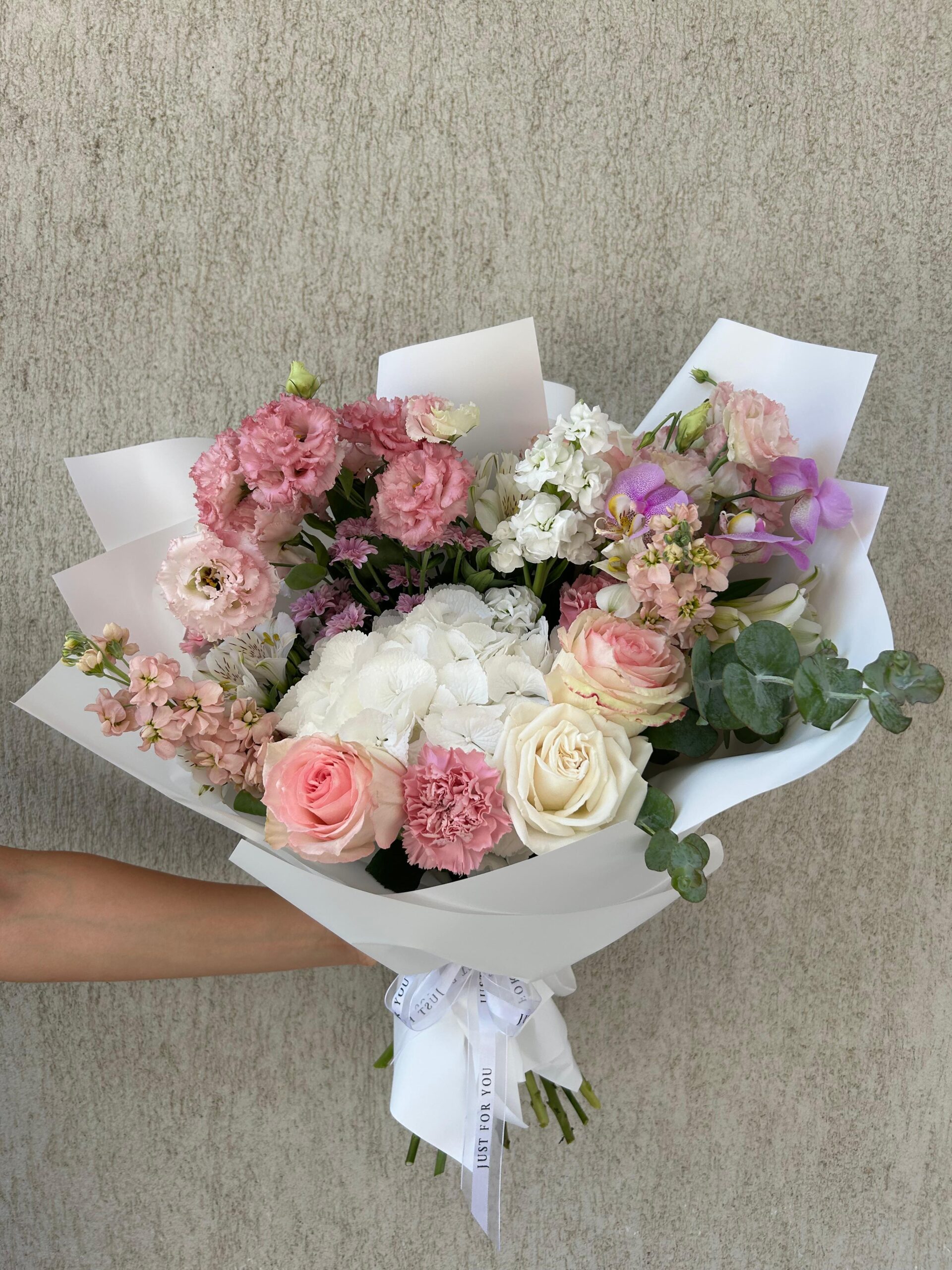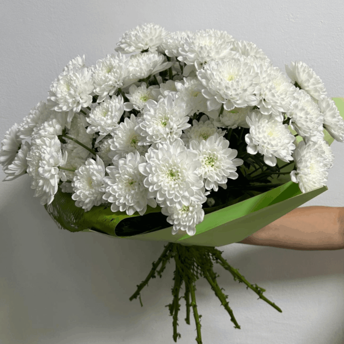 Acest buchet spune o poveste liniștită. Fiecare floare pare un mic pas către o legătură mai apropiată. Nuanța lor albă susține emoția unui început sau bucuria unui moment deja trăit. Când îl oferi, trimiți un mesaj direct și cald. Florile proaspete dau energie camerei și aduc un sentiment plăcut.